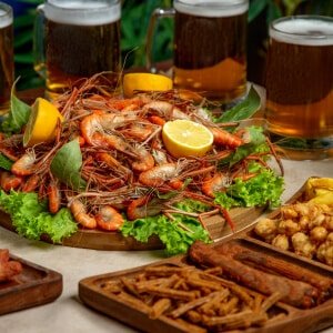 (Prawns cooked in sweet and sour sauce, with onions, garlic, tomatoes and fresh herbs)